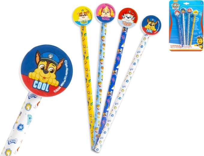 Set de crayons avec gomme PAW PATROL, 4 pcs, HB