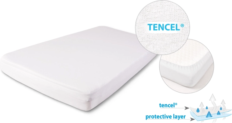 Drap-housse pratique et confortable en fibre de Tencel avec membrane à la fois imperméable et respirante, protégeant le matelas de l’humidité et des taches. Grâce à son élastique intégré, il tient parfaitement en place, est doux pour la peau, antiallergique et convient aux lits bébé.
