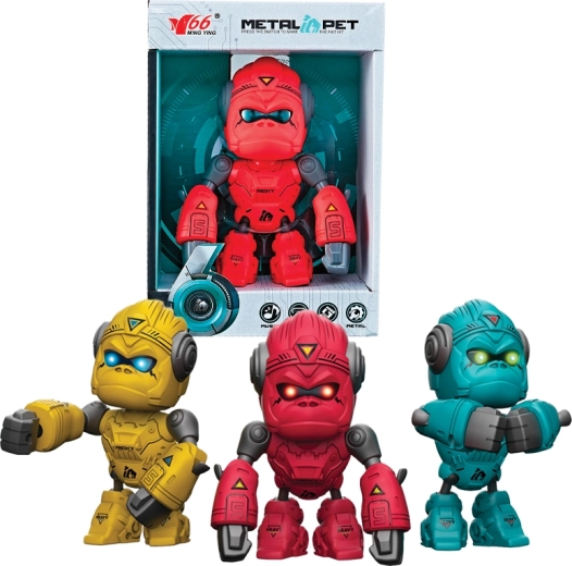 Le jouet est fabriqué en métal et plastique résistants, il supporte donc sans souci un jeu plus dynamique. Les boutons sur les mains activent les poings déployables avec son, et le bouton sur la tête déclenche les sons du gorille et allume les yeux. L’emballage inclut également 3 piles bouton LR44 – prêt à l’emploi dès le déballage.