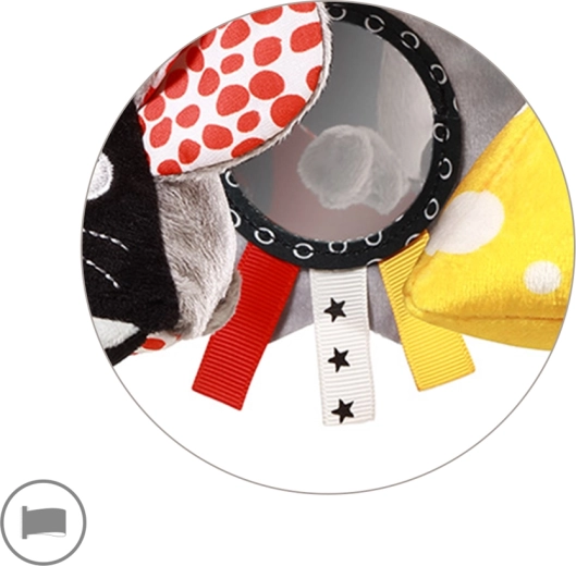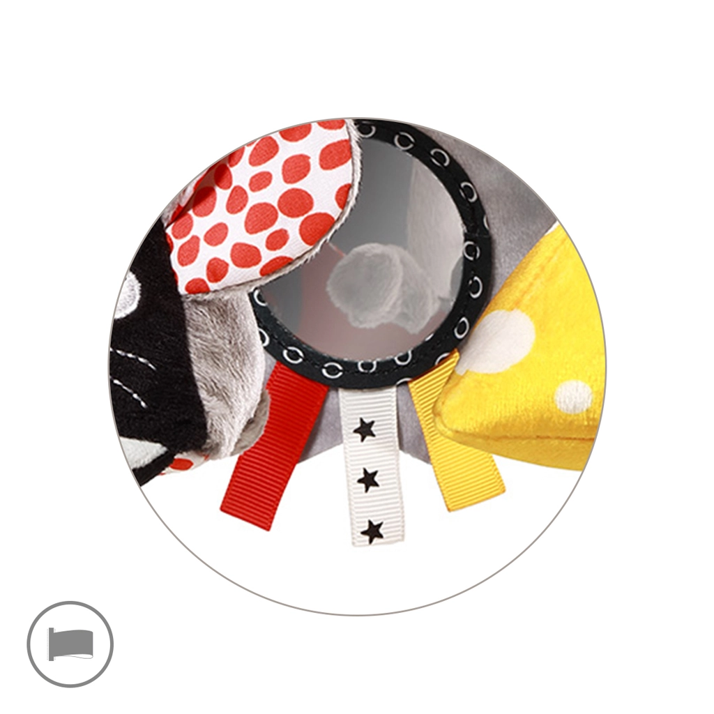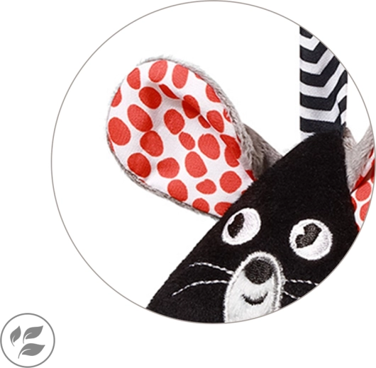 Deux hochets distincts (souris et fromage) développent la perception auditive, les oreilles bruissantes invitent au toucher et les étiquettes colorées encouragent l’entraînement des petits doigts. Un clip/support pratique permet une fixation éclair sur la poussette, le lit ou le siège auto – le compagnon parfait pour les promenades et les sorties.