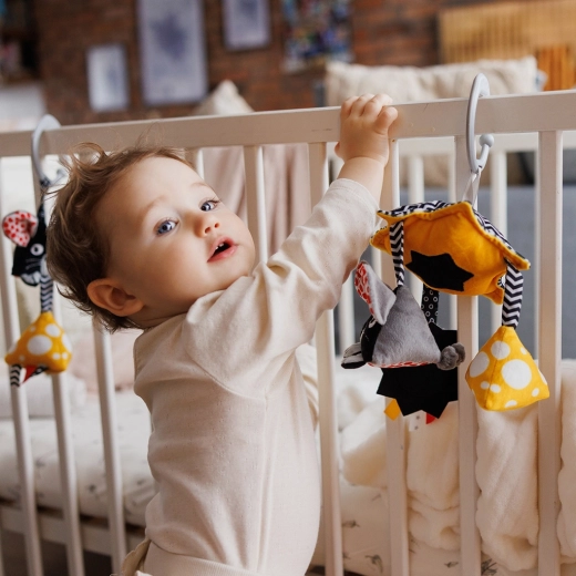Le jouet contrasté suspendu BabyOno Mouse est conçu pour les tout-petits. Les contrastes noir et blanc avec des accents jaunes et rouges attirent naturellement l’attention et soutiennent le développement visuel dès les premiers mois. Des matières toutes douces, des textures variées et un miroir sécurisé incitent les enfants à saisir, presser et explorer le monde.