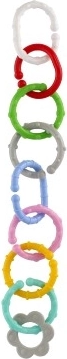 Les anneaux et les formes se relient simplement et restent solidement assemblés, afin que les enfants puissent créer des chaînettes et accrocher des jouets à la poussette ou au siège auto.
