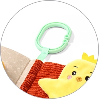 - Clip/anneau pratique pour l’accrocher à la poussette, au siège auto ou au lit bébé