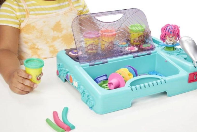 Dans ce coffret de voyage polyvalent, les enfants trouveront de nombreux accessoires et les pots classiques de pâte à modeler Play-Doh ! Vous y découvrirez la Fabrique à fun et le Salon de coiffure, ainsi qu’une multitude d’emporte-pièces et d’astuces en tout genre, alors n’hésitez pas à laisser libre cours à votre imagination. Il y a beaucoup de place pour tout : vous pouvez mettre les pots de pâte dans les ouvertures prévues, ranger les outils et les emporte-pièces dans le compartiment doté d’un couvercle texturé, avec lequel vous vous amuserez à créer de superbes motifs. L’ensemble est pratique et complet : tout le nécessaire y tient, et grâce à sa poignée compacte, vous pouvez l’emporter facilement en voyage pour égayer, par exemple, un week-end chez mamie !