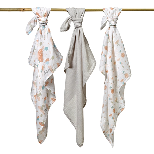 Le lot pratique de 3 pièces combine deux langes avec de délicats motifs pastel d’animaux et de ballons, et un uni dans une nuance de gris, pour s’harmoniser facilement avec le trousseau. Légers, ils sèchent rapidement et sont faciles d’entretien. Pour préserver leur douceur, privilégiez un lavage délicat selon les recommandations du fabricant.