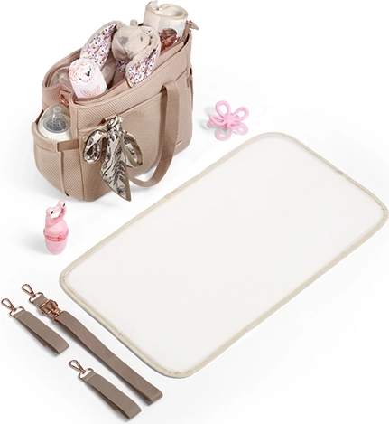 L’intérieur comprend 9 poches pratiques, dont une poche isotherme pour biberon et des compartiments pour couches, téléphone et tablette. L’attache intégrée pour clés/tétine et la fermeture zippée sécurisée facilitent l’organisation rapide. Le pack inclut également un matelas à langer doux pour changer bébé confortablement en déplacement.