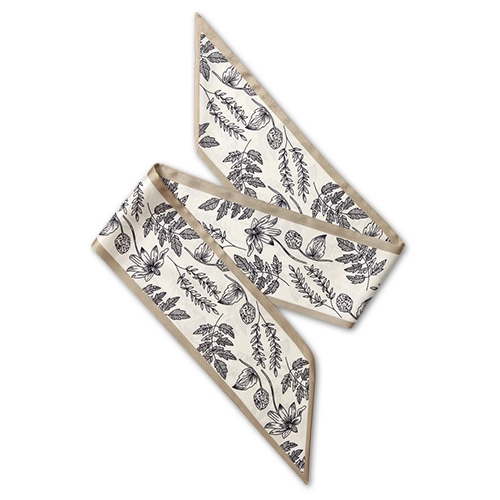 Un foulard doux à motif floral est inclus. Nouez-le à l’anse du sac, dans les cheveux ou autour du cou pour une touche d’originalité.
