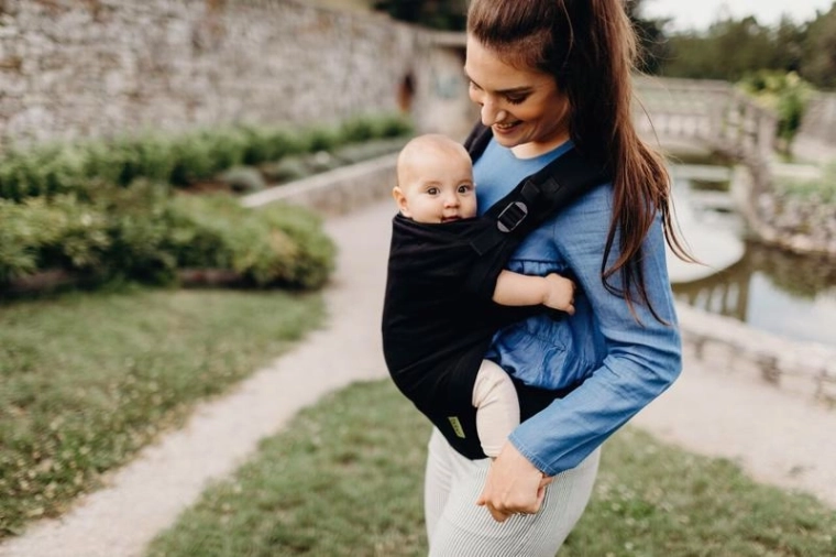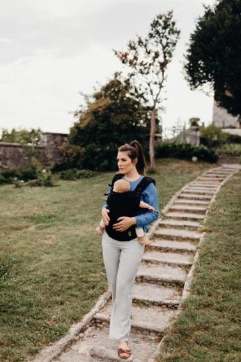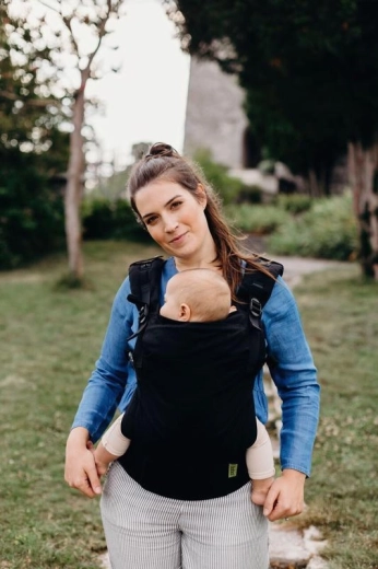 Le porte-bébé est prévu pour un portage face au porteur et, grâce à des boucles robustes et à une large ceinture (60–145 cm), répartit le poids entre les épaules et les hanches. Des réglages intuitifs assurent une installation sûre du nouveau-né comme du tout-petit en croissance, ainsi qu’un bon confort lors d’un portage prolongé.