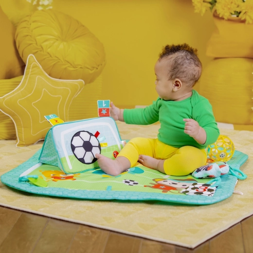 Préparez-vous à vous amuser dès les premiers jours avec le tapis d’éveil BRIGHT STARTS Oball Grip & Kick. Il propose 4 modes de jeu – sur le ventre, allongé, assis et en voyage – et un panneau interactif avec lumières, mélodies et sons (30+), qui récompense chaque toucher et coup de pied. La surface douce et rembourrée et les jouets suspendus colorés favorisent le développement sensoriel ainsi que la motricité fine et globale.
