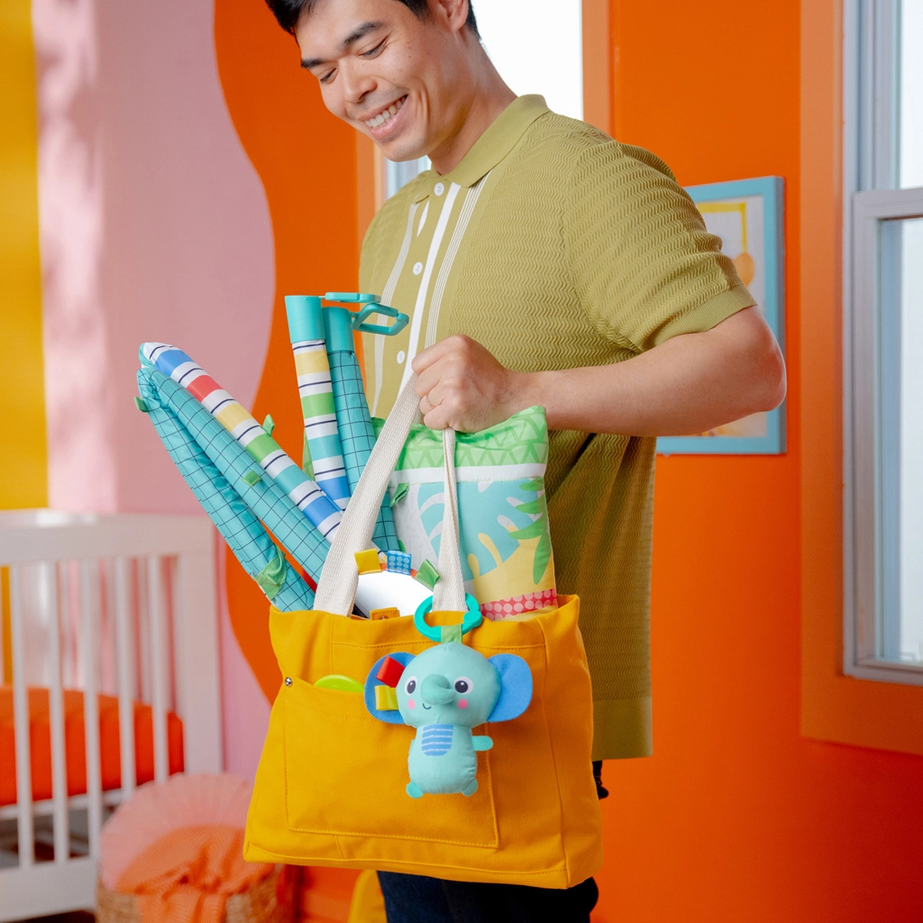 Une joyeuse jungle de couleurs et d’animaux amis motive bébé à explorer, à tendre les bras et à donner des coups de pied. Ce centre de jeu compact se transporte et se range facilement, tandis que le tapis rembourré assure le confort pendant le jeu et le temps sur le ventre. Tous les jouets peuvent être détachés et utilisés en dehors du tapis – par exemple sur la poussette ou le siège auto.