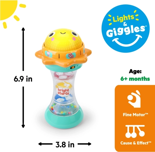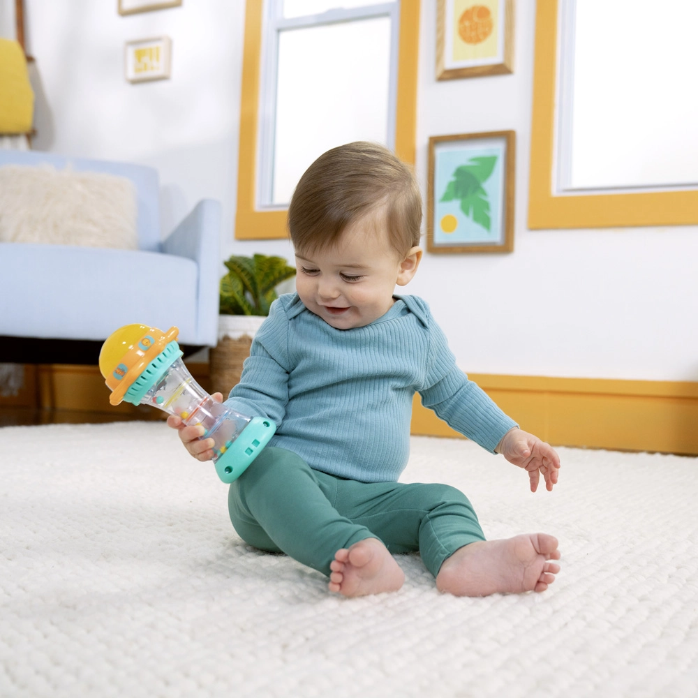 Secouez le jouet et regardez les billes colorées se déplacer dans la chambre transparente. L’enfant reçoit une stimulation visuelle et sonore tout en exerçant sa motricité fine.