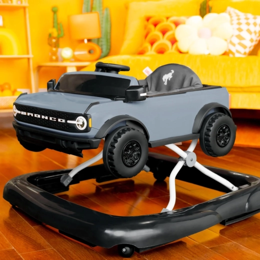 Découvrez une façon ludique de soutenir les premiers pas. Le trotteur 4-en-1 Bright Starts Ford Bronco Area 51 allie un design automobile réaliste à une sécurité fonctionnelle : large base stable, roues en caoutchouc avec freins et cadre robuste offrent à l’enfant confiance et stabilité. Le volant interactif avec effets lumineux et sonores peut être retiré pour jouer au sol ou en voyage.