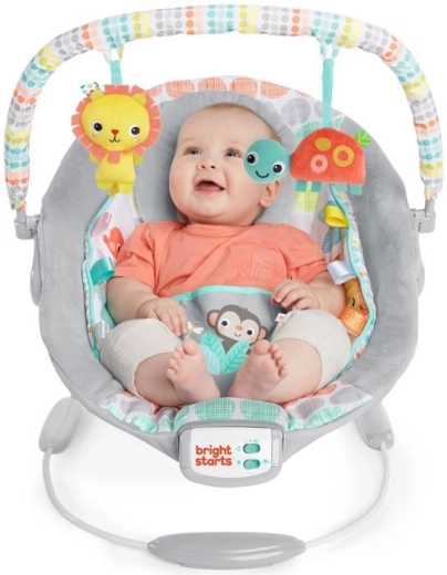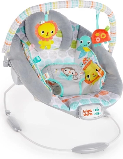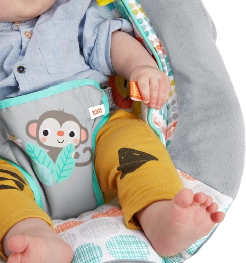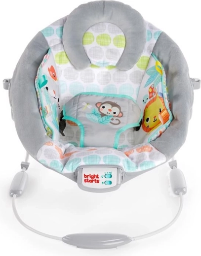 Le transat Bright Starts Whimsical Wild est conçu pour le confort et le divertissement au quotidien. Un rembourrage doux, un appuie-tête amovible et un réducteur intégré pour nouveau-né offrent un soutien approprié. Les vibrations apaisantes et les 7 mélodies avec volume réglable aident à calmer et à endormir, tandis que la minuterie 15 minutes économise les piles.