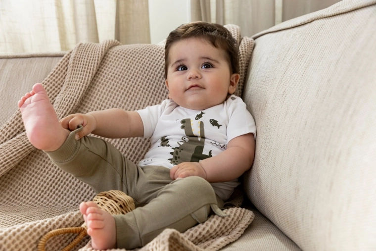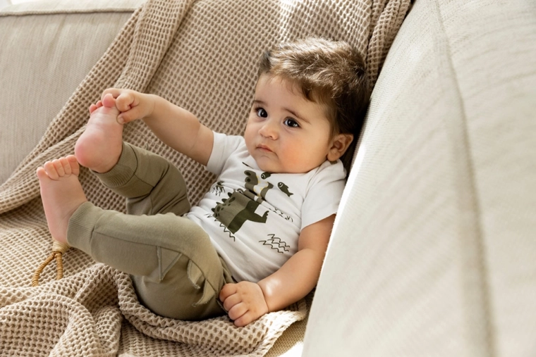 Le jersey de coton avec une touche d’élasthanne est doux pour la peau des enfants, s’adapte parfaitement et n’entrave pas les mouvements, que ce soit pendant les jeux ou le repos.