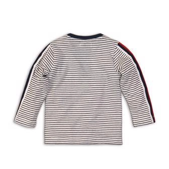 T-shirt pour enfants stylé à manches longues de la marque DIRKJE, à rayures blanc-marine, offrant un confort quotidien, un matière douce avec coton et une petite poche poitrine pratique. Grâce à ses manches longues et à son jersey agréable, il est idéal pour jouer toute la journée et pour la maternelle.