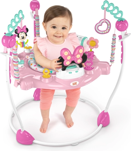 Ce sauteur ludique à l’effigie de MINNIE MOUSE transforme chaque jour en une joyeuse exploration. Il motive l’enfant à bouger et à découvrir les liens de cause à effet – plus il saute, plus il déclenche de lumières et de musique. Le siège pivotant à 360° garantit un accès facile à toutes les activités et à tous les jouets.