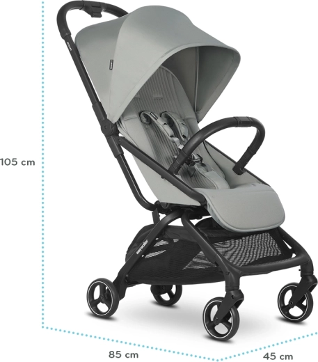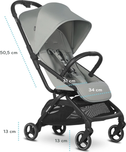 Rockey S est le modèle le plus léger de la famille EASYWALKER ROCKEY – il ne pèse que 7 kg et se plie comme se déplie entièrement automatiquement en un paquet super compact correspondant aux dimensions d’un bagage cabine. Il offre pourtant un siège étonnamment spacieux, inclinable jusqu’à l’allongé, idéal pour les siestes prolongées et les voyages confortables.
