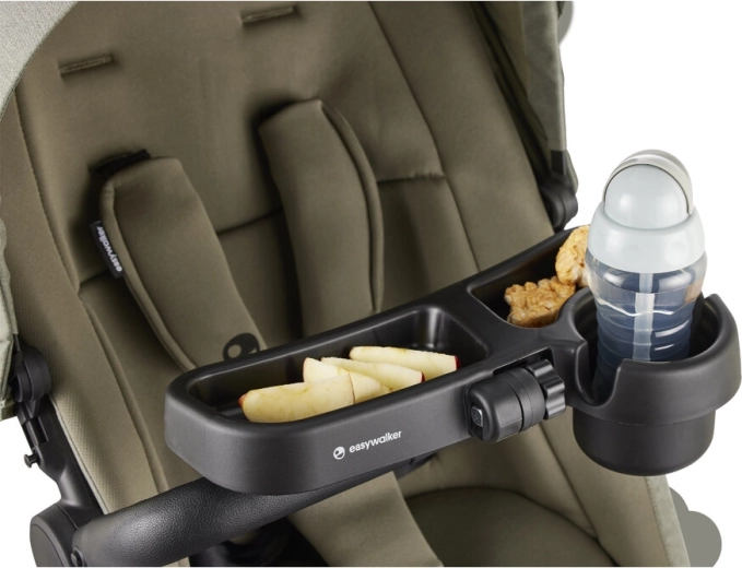 Profitez de promenades tranquilles sans miettes ni boissons renversées. Ce plateau-repas universel EASYWALKER propose un aménagement astucieux avec un porte-gobelet ou bouteille et deux compartiments pour les encas. Le matériau sans BPA est sûr pour les aliments et l’entretien est un jeu d’enfant – il suffit de le mettre au lave-vaisselle.