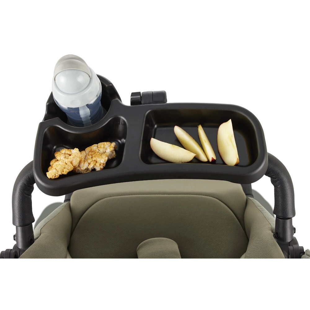 Installation facile sans outil – il suffit de clipser le plateau sur l’arceau d’une poussette compatible et vous êtes prêt à partir.
