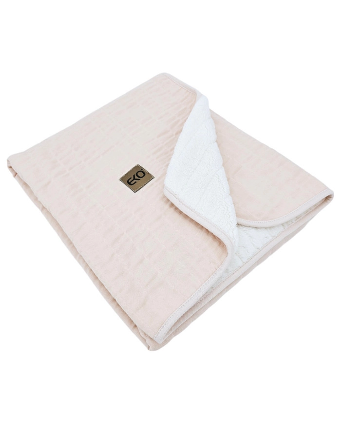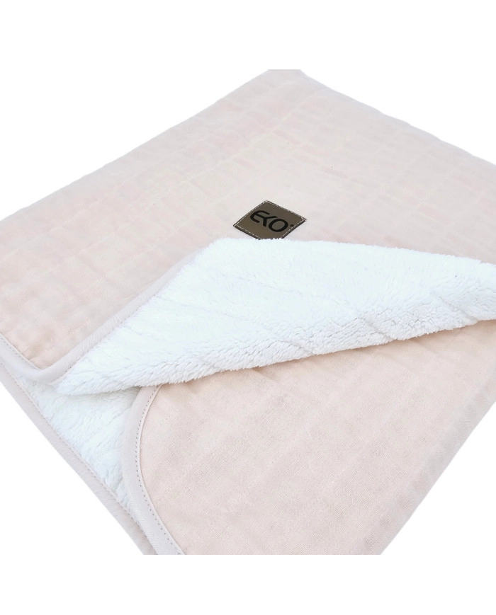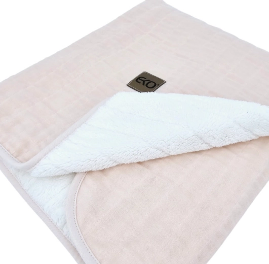Cette couverture en mousseline EKO dans une délicate teinte rose associe le coton naturel 100 % à l’extérieur et une doublure chaude en fourrure (polaire) 100 % polyester. L’isolation légère mais efficace en fibre hypoallergénique assure une chaleur agréable sans surcharge. Vous l’utiliserez facilement toute l’année – à la maison, en déplacement et lors des promenades.