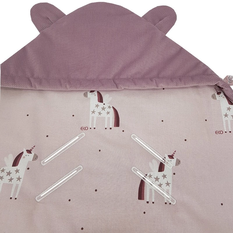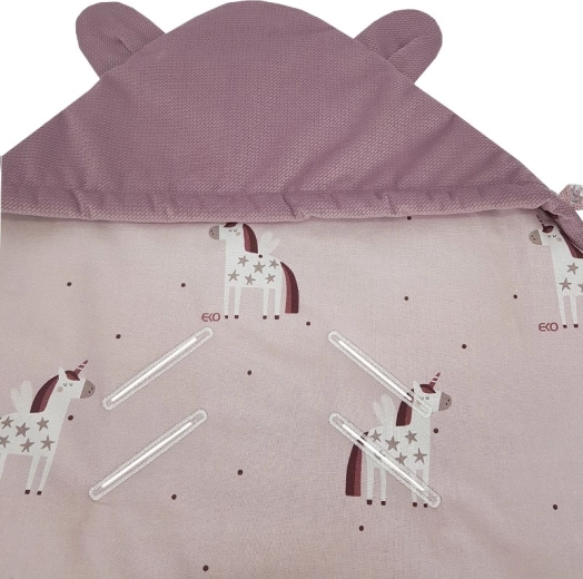 La chancelière enveloppante EKO Velvet Unicorn est conçue pour des trajets en siège auto sûrs et confortables, ainsi que pour des promenades paisibles dans la coque ou la poussette. Le matériau doux VELVET/MINKY à l’extérieur, la doublure en coton avec un imprimé adorable et le garnissage hypoallergénique assurent une étreinte moelleuse qui garde votre bébé au chaud et à l’aise.