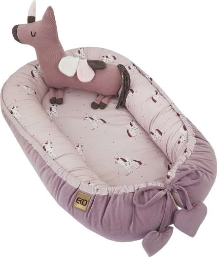Le nid pour bébé universel Eko Unicorn 90 × 60 cm crée un espace douillet et protégé à la maison comme en déplacement. Des bords hauts et généreusement rembourrés aident à maintenir l’enfant en position stable et facilitent la position latérale, ce qui est pratique notamment en cas de reflux. L’intérieur en coton doux et le velours moelleux à l’extérieur assurent un confort et une chaleur maximaux.