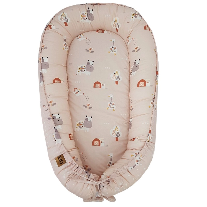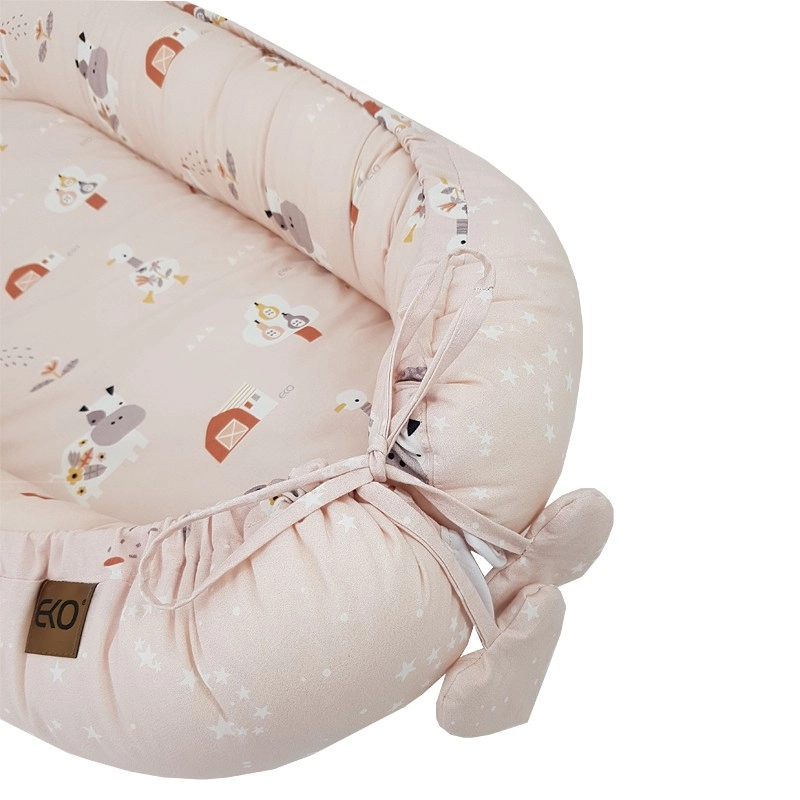 EKO nid pour bébé réversible en coton My Farm Stars Powder Pink 90 × 60 cm