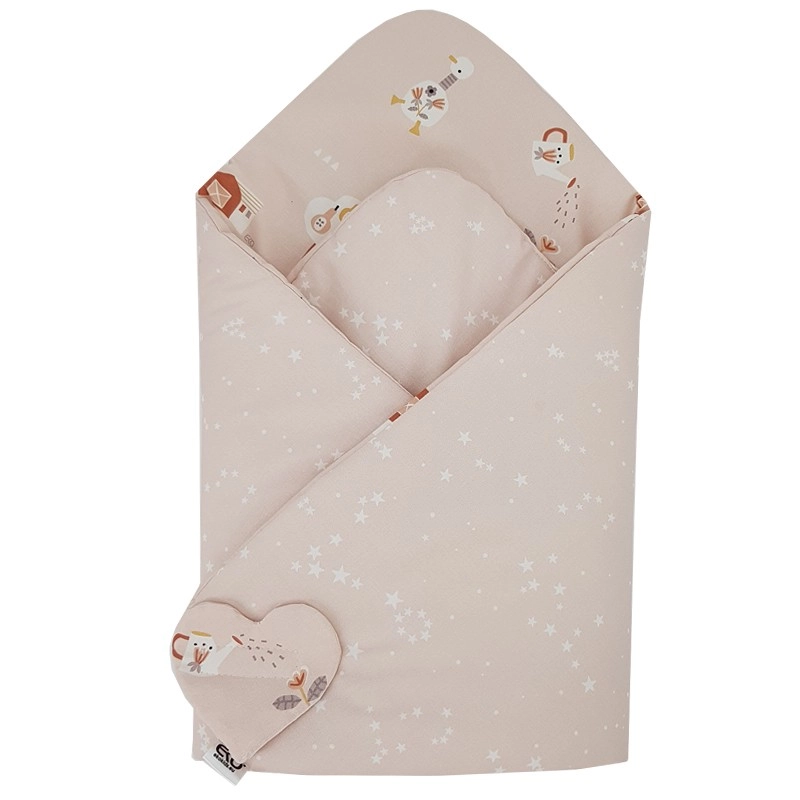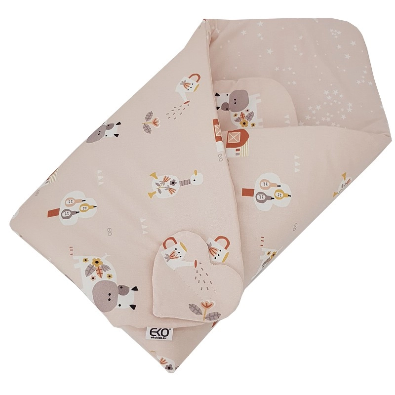 Le lange d’emmaillotage EKO My Farm en rose poudré est fabriqué en 100% coton agréable et très doux au toucher, avec impression numérique. Sa conception réversible permet d’adapter le look selon l’humeur et de l’assortir aisément au trousseau. Le garnissage respirant et hypoallergénique assure chaleur et confort pour le sommeil comme pour les câlins.