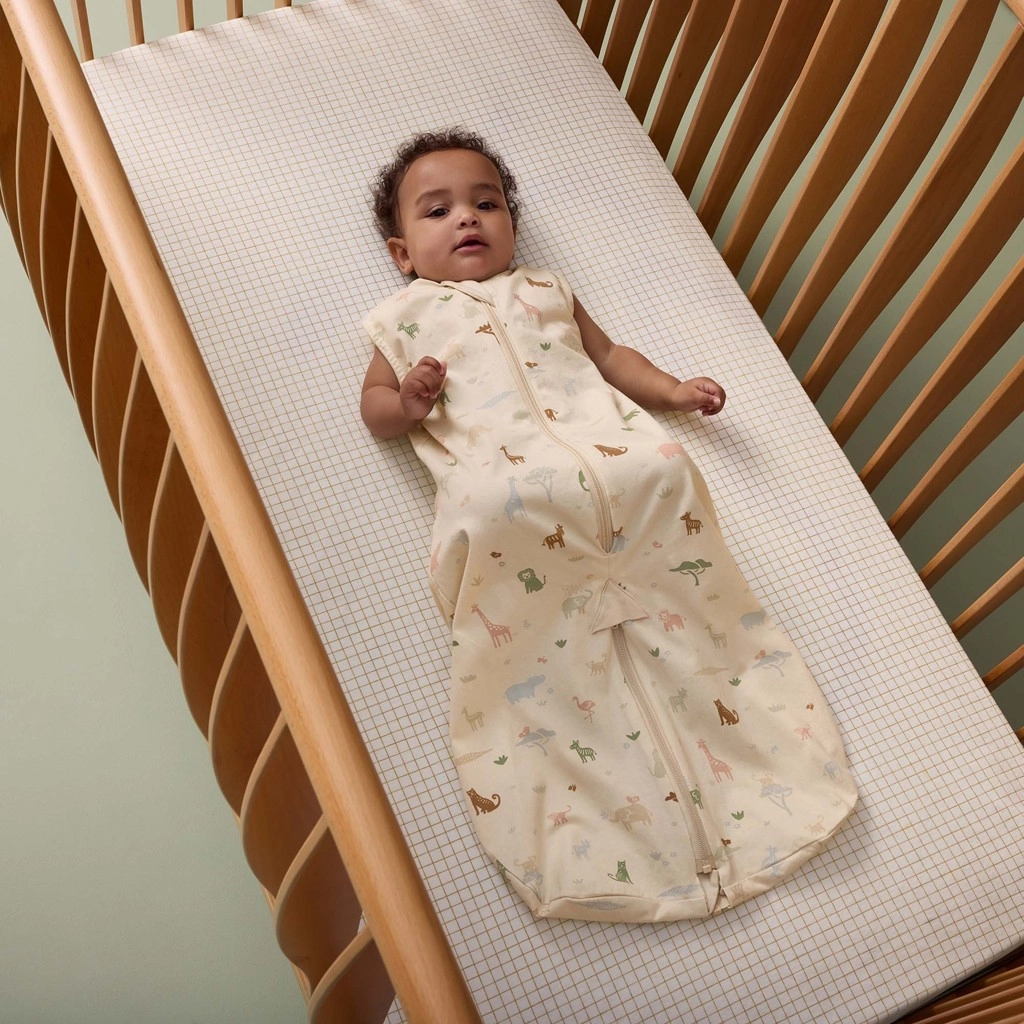 La gigoteuse et combinaison 2-en-1 ErgoPouch Suit Savannah est une solution primée pour les enfants qui aiment bouger librement. En mode gigoteuse, elle offre un sommeil douillet et sûr ; en mode combinaison, elle permet de marcher confortablement, de voyager en poussette et de faciliter les passages nocturnes aux toilettes. La variante légère 0,2 TOG est conçue pour l’été et les pièces plus chaudes, tandis que les manches en jersey doux 1,0 TOG à poignets repliables protègent les épaules et les mains pendant les matinées plus fraîches.