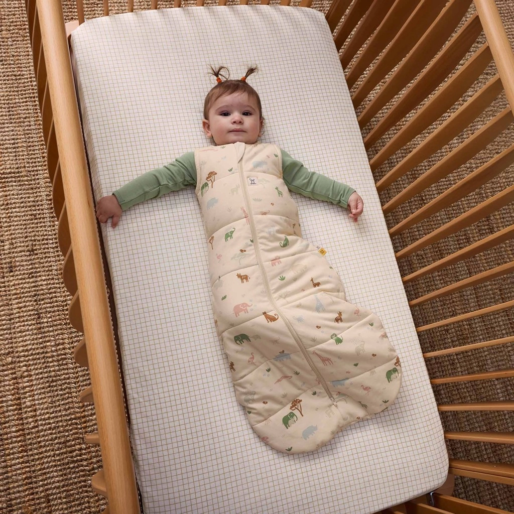 Idéale pour des pièces à 17–23 °C. Les fibres organiques respirantes aident à réguler la température et gardent l’enfant au chaud toute la nuit.