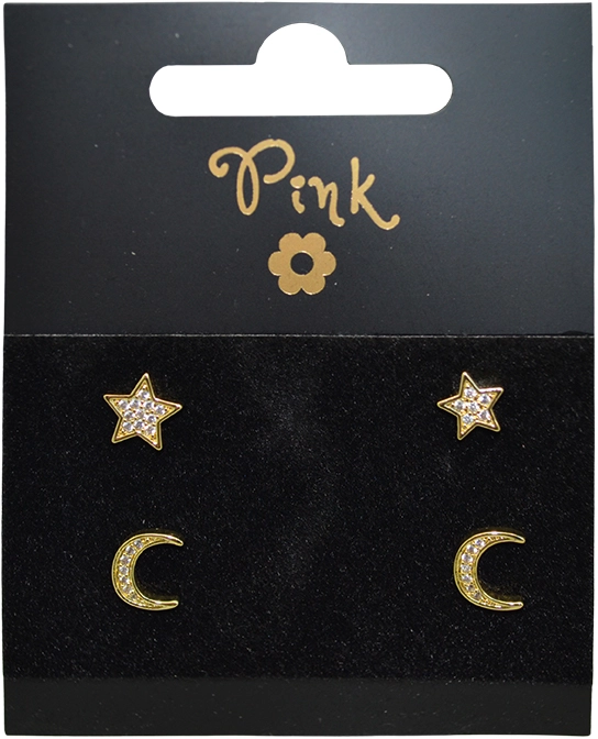 Cet ensemble de quatre boucles d’oreilles dorées associe la magie du ciel nocturne à une modernité épurée. Une paire arbore un élégant croissant de lune, l’autre une délicate étoile à cinq branches. Les cristaux taillés apportent un éclat qui capte la lumière à chacun de vos mouvements, tandis que la teinte chaude du doré souligne un look luxueux.