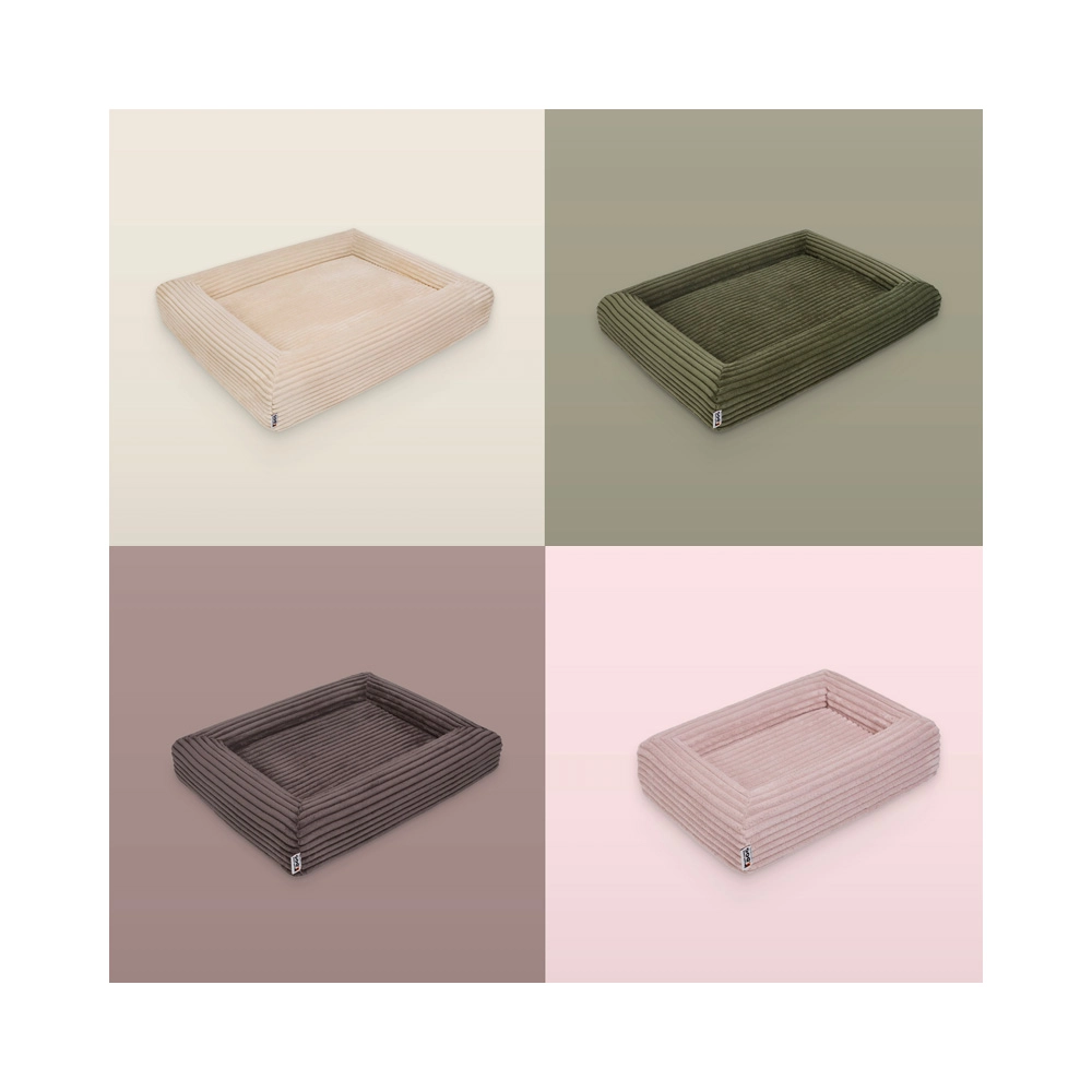 La housse en velours côtelé doux (100 % polyester) certifiée OEKO-TEX Standard 100 est résistante, sèche rapidement et retient moins les odeurs. Grâce aux fermetures YKK, vous la retirez aisément et la lavez en machine à 30 °C. La couche interne imperméable protège le noyau en mousse de l’humidité et des saletés, tandis que le dessous antidérapant maintient le panier stable même sur les sols lisses.