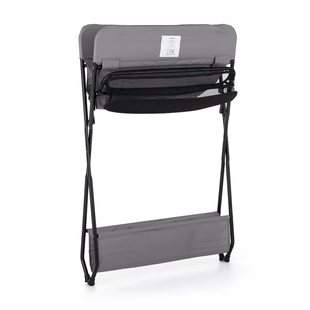 La table à langer Feedo Grey allie confort, sécurité et praticité. La surface haute et confortable facilite le change sans se pencher inutilement, tandis que les organisateurs latéraux et l’étagère inférieure gardent tout le nécessaire à portée de main. Sa structure métallique résistante assure une utilisation en toute confiance.