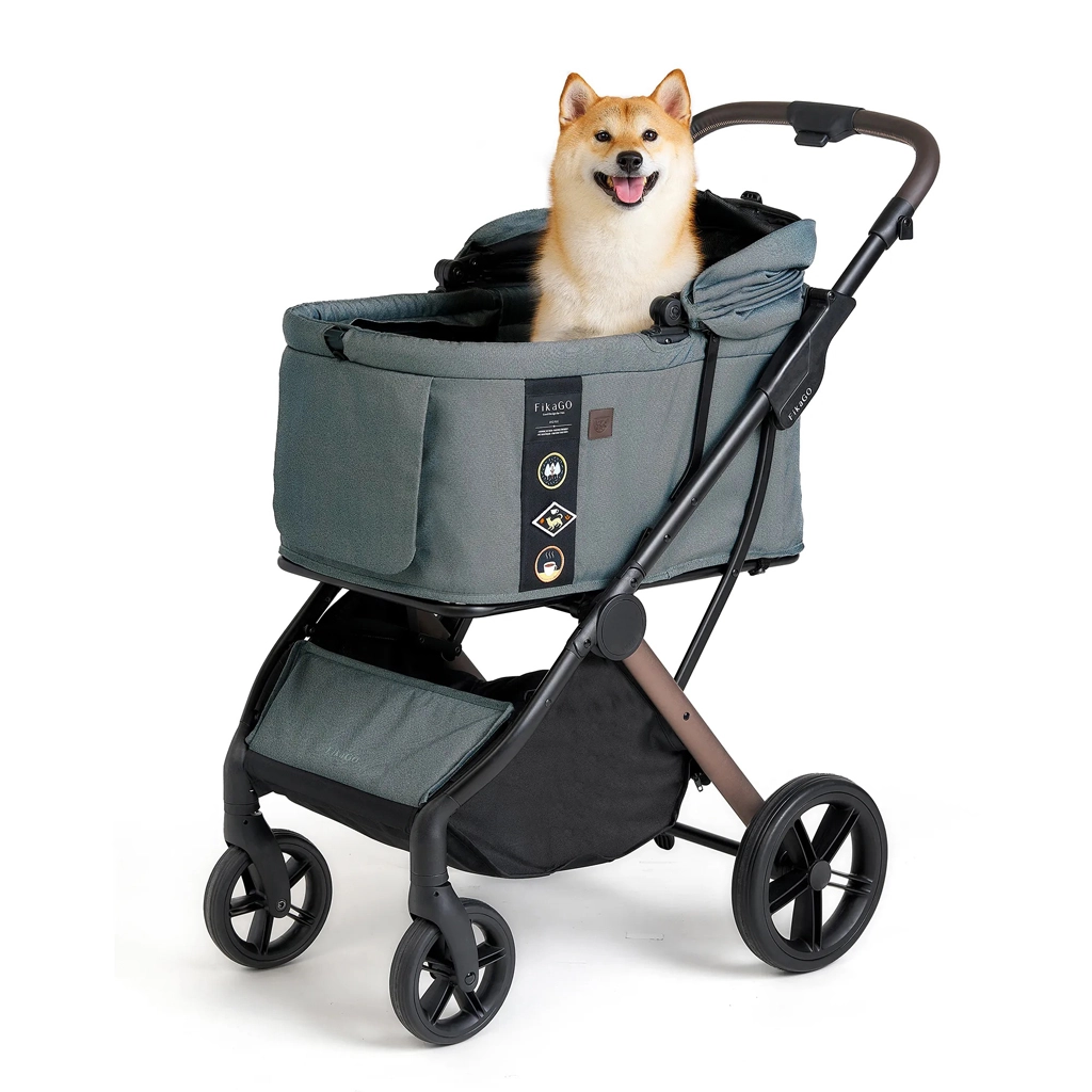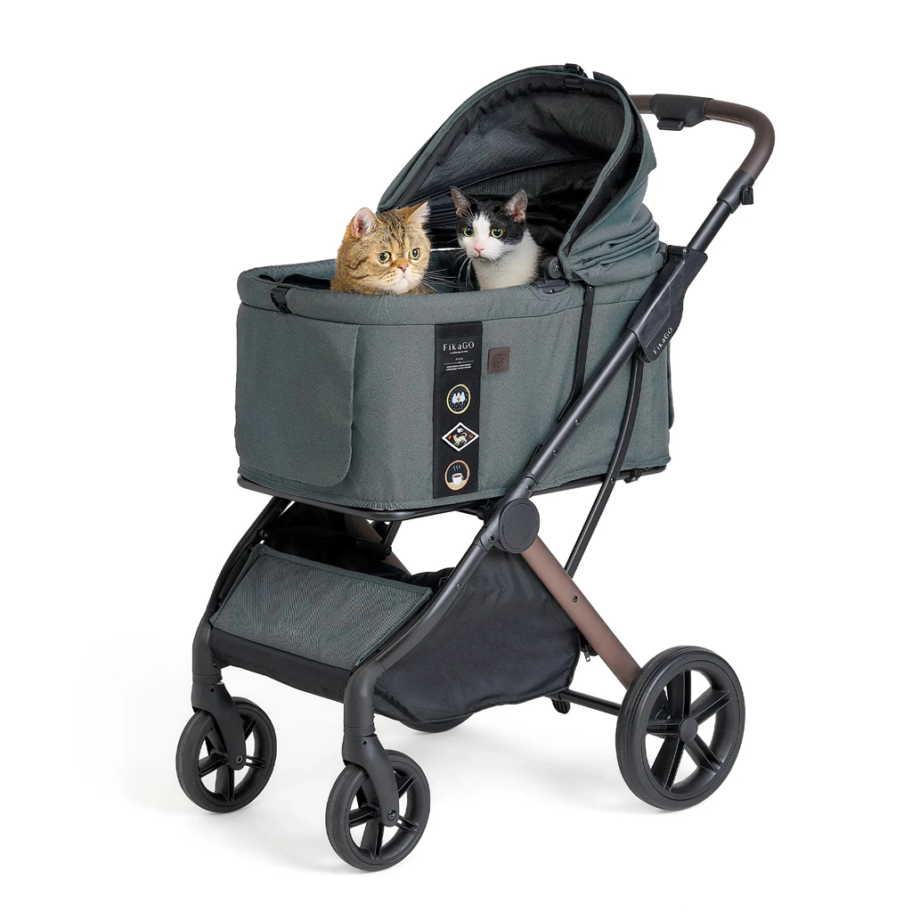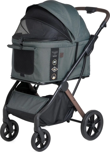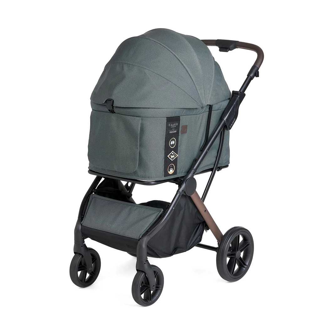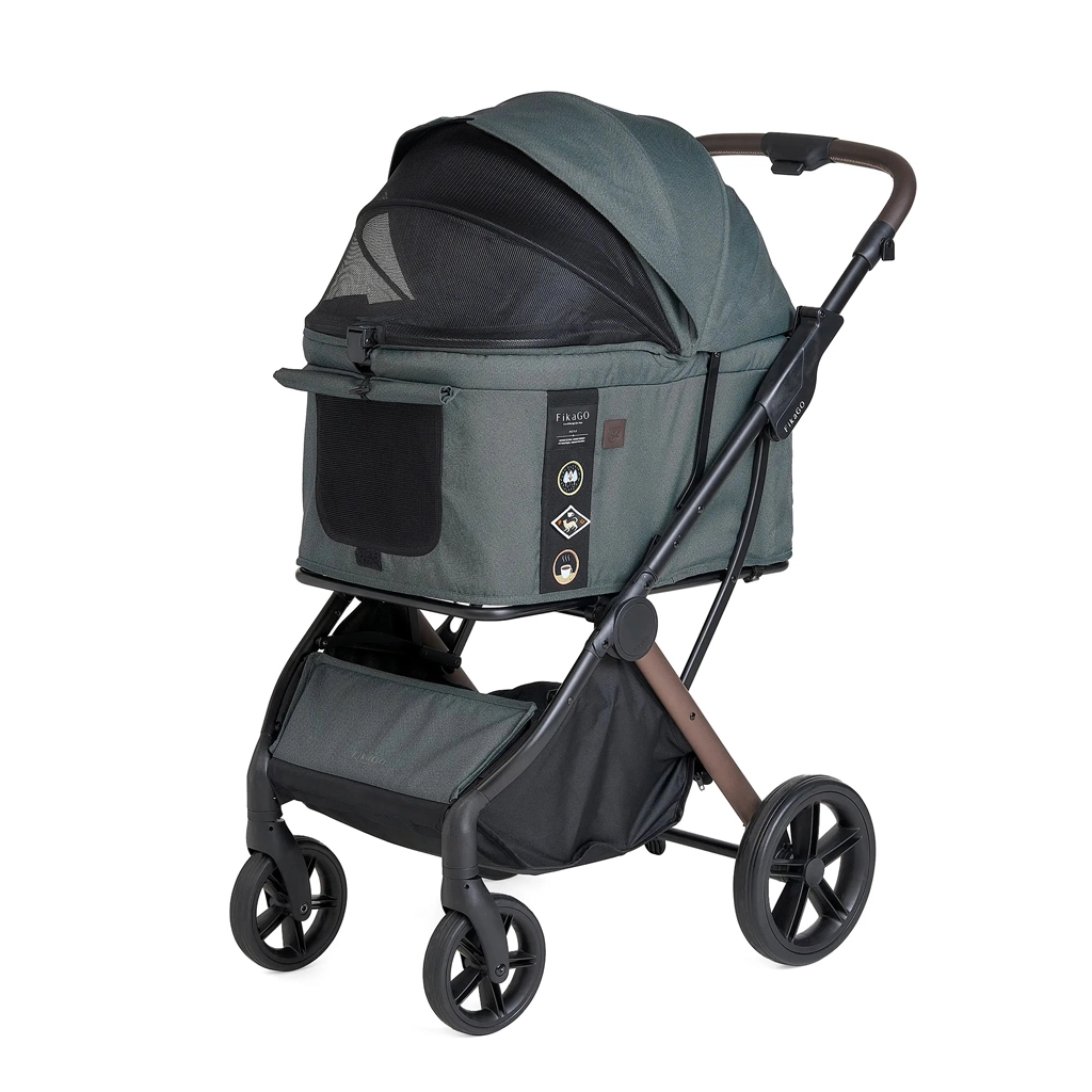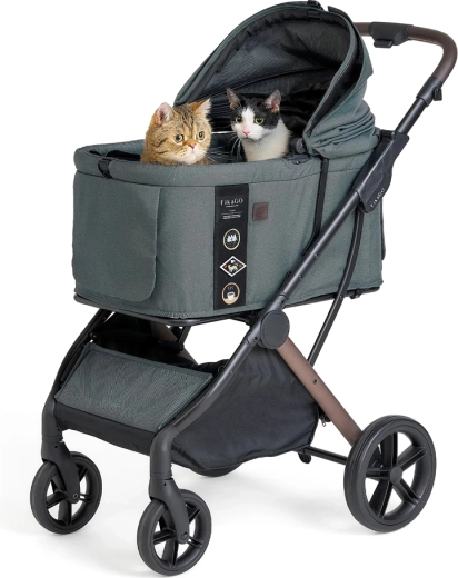 La poussette pour animaux FIKAGO AGILE 2 au ton élégant Vintage Green assure un transport confortable et sûr pour chats et chiens. Grâce au pliage automatique à une main, à la structure autoportante et à la suspension des 4 roues, elle convient aux promenades quotidiennes comme aux voyages. La cabine spacieuse avec matelas confortable, le tissu recyclé déperlant et les détails bien pensés en font un compagnon fiable pour vous et votre animal.
