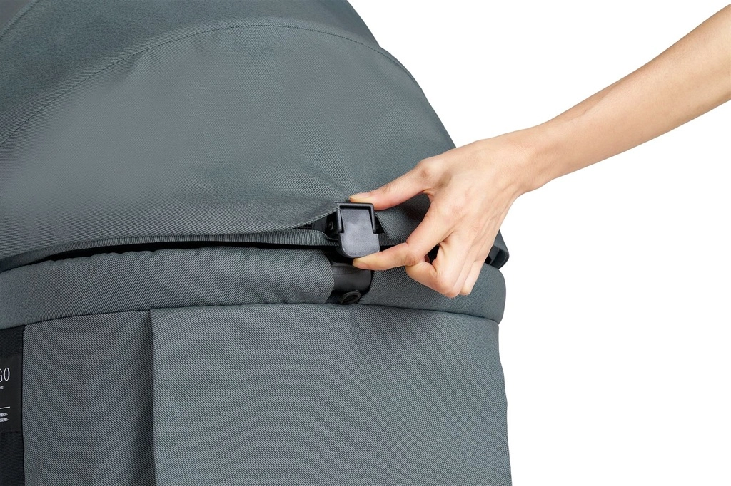 Le verrou intégré du cadre maintient la poussette bien fermée lors du transport et du rangement.