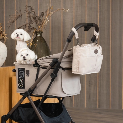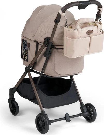 L’organiseur est conçu pour s’adapter à la plupart des poussettes, et sa forme rigide garde le contenu bien ordonné même en roulant. La finition beige s’accorde facilement avec différents styles de poussettes et, grâce à des matériaux de qualité, l’entretien est aisé.