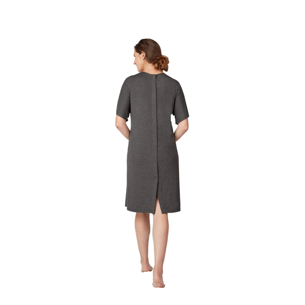 Le dos se ferme par boutons-pression sur toute la longueur – rien ne dépasse et il peut s’ouvrir rapidement pour la surveillance ou la péridurale.