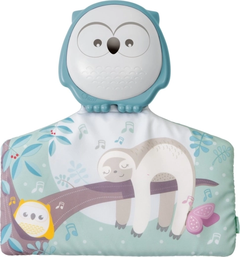 Le module électronique en forme de hibou propose 20 minutes de musique classique et de sons de la nature, des lumières colorées et une commande simple via 3 déclencheurs. Le tapis inclut également un anneau de dentition souple en forme de feuille pour soulager les poussées dentaires. Le panneau se fixe facilement aux lits CHICCO Next2Me et à la plupart des lits en bois, afin d’avoir lumière apaisante et musique toujours à portée de main.