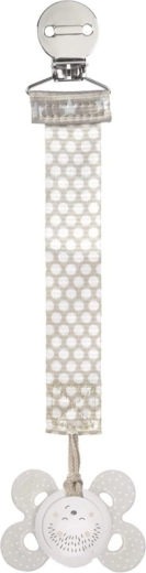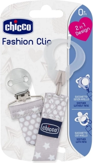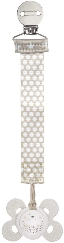 Le clip pour sucette Chicco Fashion neutre est un accessoire pratique qui évite la perte de la tétine et sa chute au sol. La lanière textile douce au design neutre est agréable au toucher et, grâce à son impression recto-verso, a fière allure de chaque côté. La conception innovante permet une fixation rapide et fiable à la plupart des tétines.