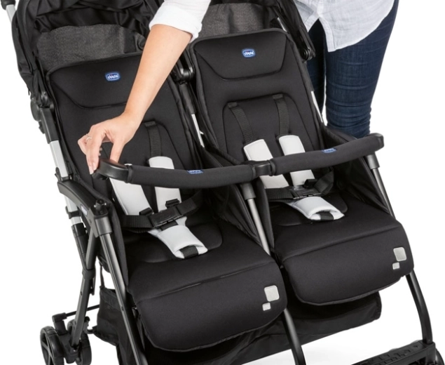 CHICCO Ohlala Twin est une poussette canne pour deux enfants exceptionnellement légère (8 kg) et ultra-compacte, qui se plie d’une seule main et tient debout une fois pliée. Chaque siège peut être entièrement incliné indépendamment jusqu’à la position allongée, permettant à l’un de se reposer pendant que l’autre découvre le monde.
