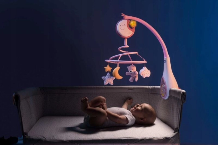 - Mobile 3‑en‑1 avec veilleuse et musique