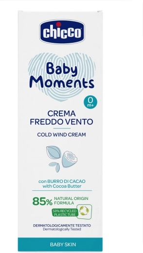 La douce crème protectrice CHICCO Baby Moments protège la peau sensible de bébé du froid et du vent. Sa formule à 81 % d’ingrédients d’origine naturelle, au beurre de cacao et au beurre de karité, au panthénol et aux huiles oméga-3 renforce la barrière cutanée et laisse la peau douce et nourrie. Sans parabènes, colorants ni alcool, avec le délicat parfum Baby Moments. Testée dermatologiquement et ophtalmologiquement, convient dès la naissance.