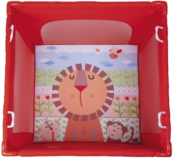 Parc pour enfant CHICCO pratique et sûr avec tapis d’éveil Lion moelleux, offrant un espace sécurisé pour jouer et se reposer. Grâce à son pliage rapide, ses dimensions compactes et son sac de transport, il est idéal aussi en voyage. Les parois en maille transparentes assurent un excellent contrôle visuel de l’enfant, tandis que 4 poignées pratiques favorisent l’autonomie et les premiers essais pour se redresser.