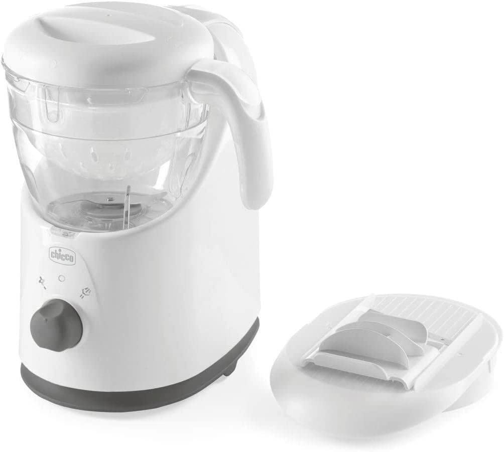 Vous voulez préparer rapidement des repas sains pour bébé sans désordre ? Le cuiseur vapeur et mixeur 4-en-1 CHICCO Easy Meal combine râpage, cuisson à la vapeur, mixage et réchauffage en un seul appareil. Grâce à sa râpe pratique, à la distribution efficace de la vapeur et à ses lames tranchantes en acier inoxydable, vous réalisez des purées parfaites en un rien de temps.