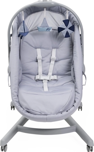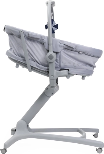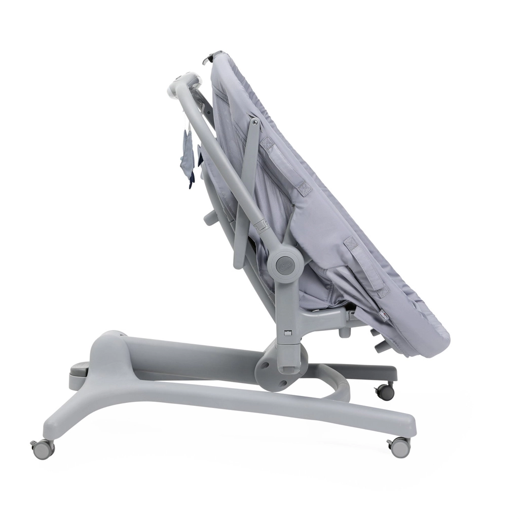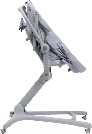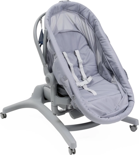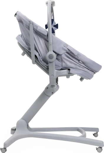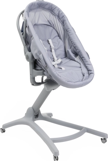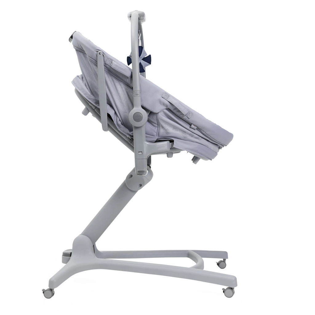 Berceau, couffin autonome, fauteuil, chaise haute et premier fauteuil dans une solution compacte. Réglage facile selon les besoins du moment tout au long de la journée.