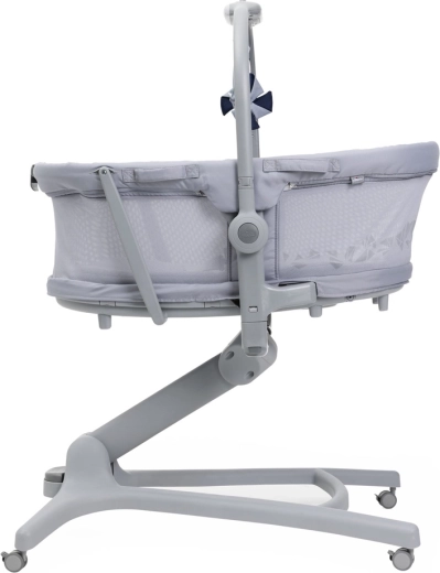 - Mobilité maximale : 4 roulettes avec frein, berceau amovible avec poignées, base stable.