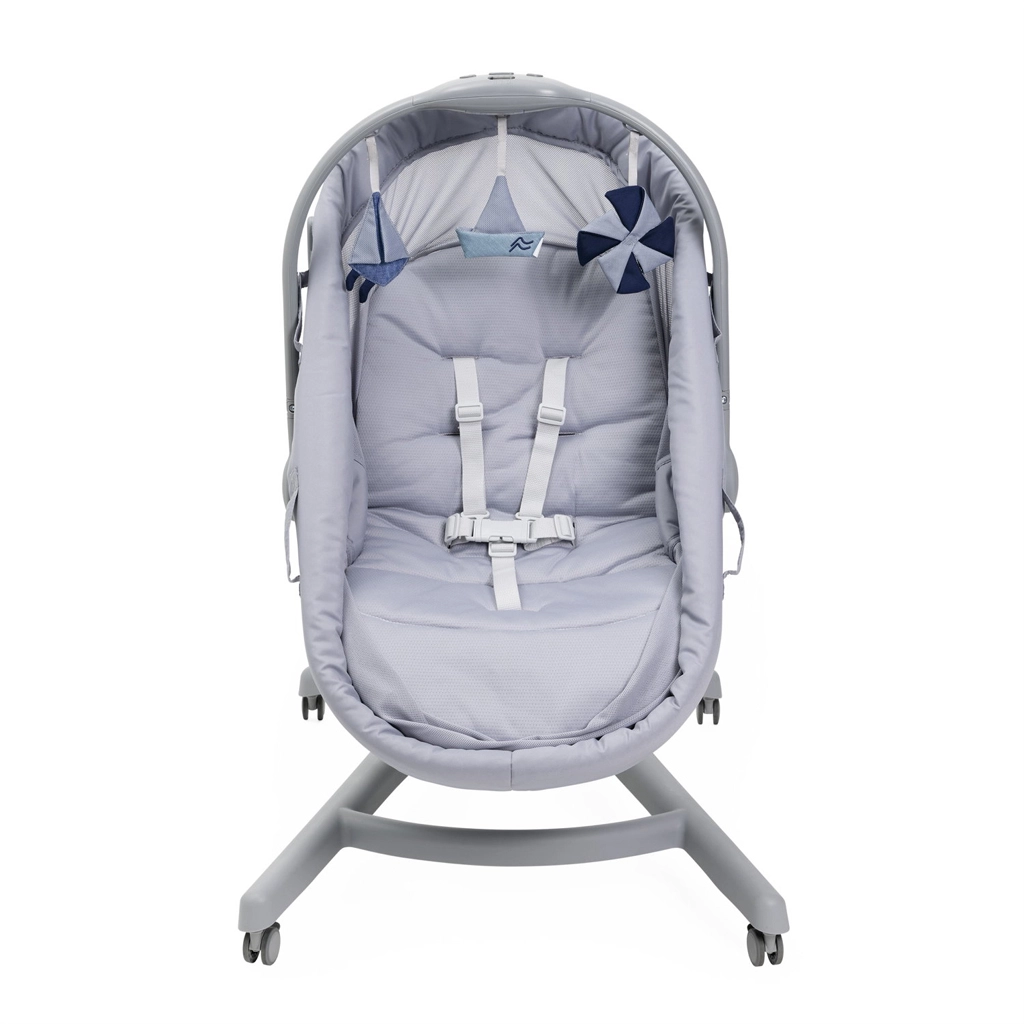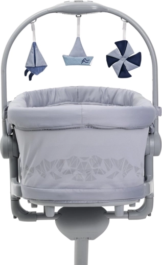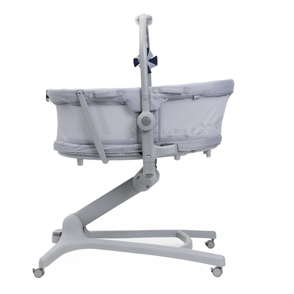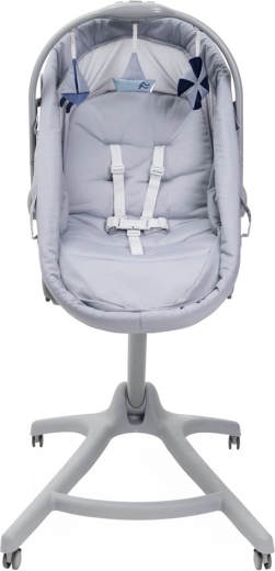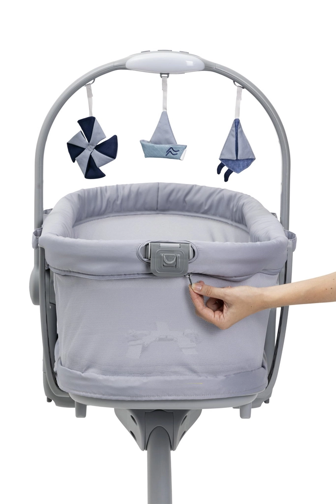 - 5 fonctions en 1 : berceau sur pied, couffin autonome, fauteuil, chaise haute, premier fauteuil.