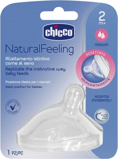 La tétine en silicone Chicco Natural Feeling à débit moyen pour les enfants à partir de 2 mois favorise une succion naturelle et une position confortable pendant l’alimentation. Grâce à sa forme rappelant le sein, elle facilite la transition entre l’allaitement et le biberon. La double valve anti-coliques aide à limiter l’ingestion d’air et réduit le risque de coliques, de ballonnements et de régurgitations. Compatible avec tous les biberons Chicco Natural Feeling. L’emballage contient 1 pièce.