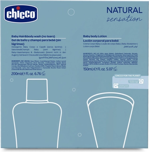 Le coffret cadeau Chicco Natural Sensation Daily Care est la solution parfaite pour l’hygiène et l’hydratation quotidiennes de bébé. Le shampooing et gel lavant 2-en-1 à l’aloe vera et à la camomille nettoie en douceur la peau et les cheveux en un seul geste, se rince facilement et facilite le démêlage. Le lait corporel au beurre de karité et à la vitamine E hydrate durablement, renforce la barrière cutanée et pénètre rapidement sans film gras.