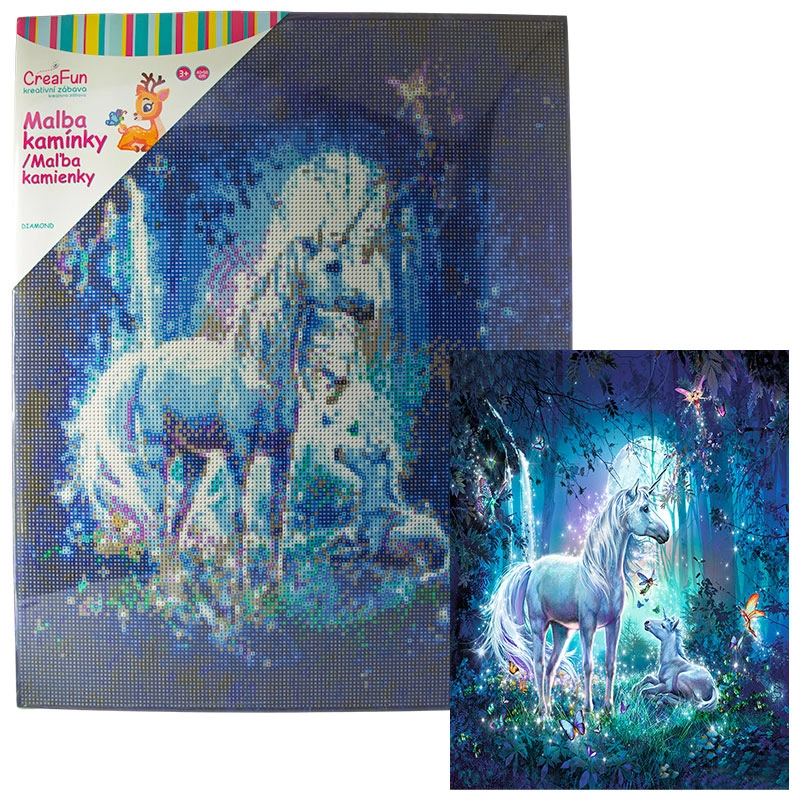 La peinture diamant est un choix idéal pour tous ceux qui aiment créer et souhaitent décorer leur intérieur avec une pièce originale. Avec le motif du majestueux Pégase et de son petit, vous obtiendrez une décoration qui attire le regard et apporte douceur et fantaisie à votre intérieur. Grâce à la toile préimprimée et à la couche auto-adhésive, vous placez facilement chaque strass au bon endroit.